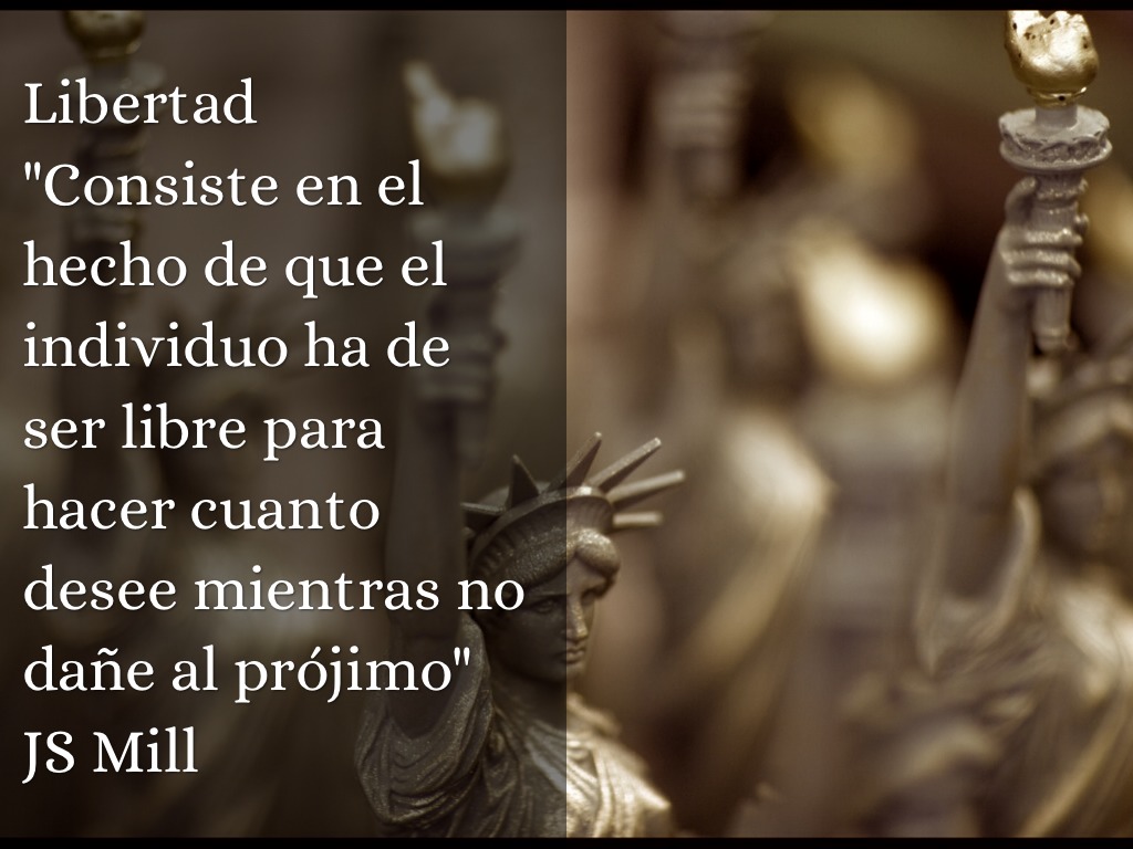 "Consiste en el hecho de que el individuo ha de ser libre para hacer cuanto desee mientras no dañe al prójimo"