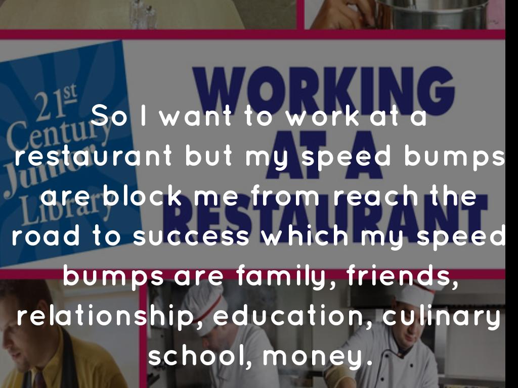 So I want to work at a restaurant but my speed bumps are block me from reach the road to success which my speed bumps are family, friends, relationship, education, culinary school, money.