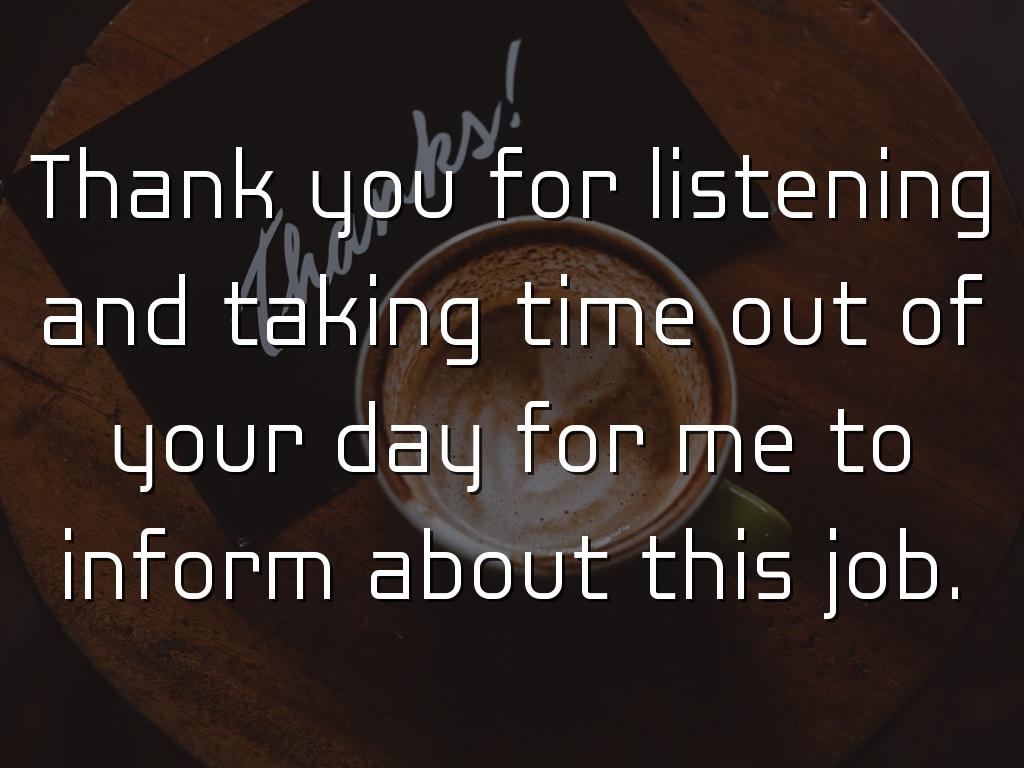 Thank you for listening and taking time out of your day for me to inform about this job.