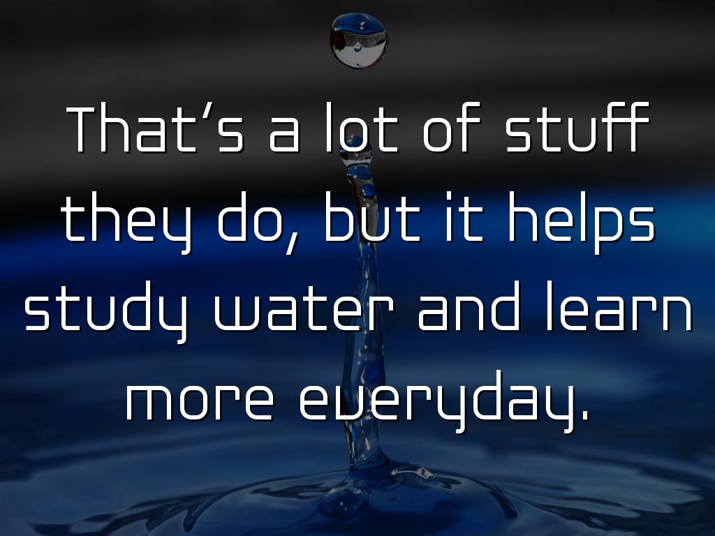 That’s a lot of stuff they do, but it helps study water and learn more everyday.