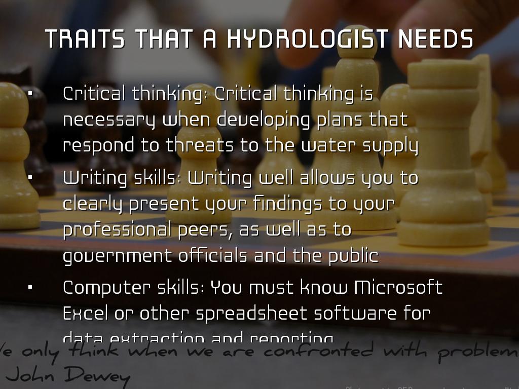 Critical thinking: Critical thinking is necessary when developing plans that respond to threats to the water supply