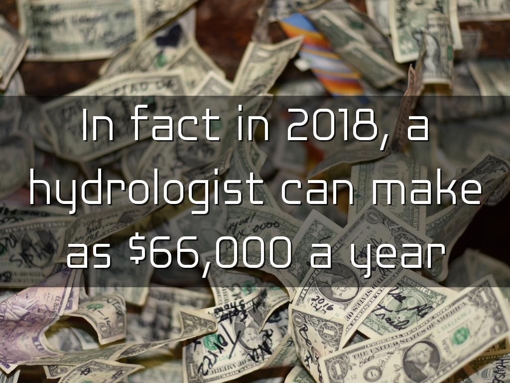 In fact in 2018, a hydrologist can make as $66,000 a year