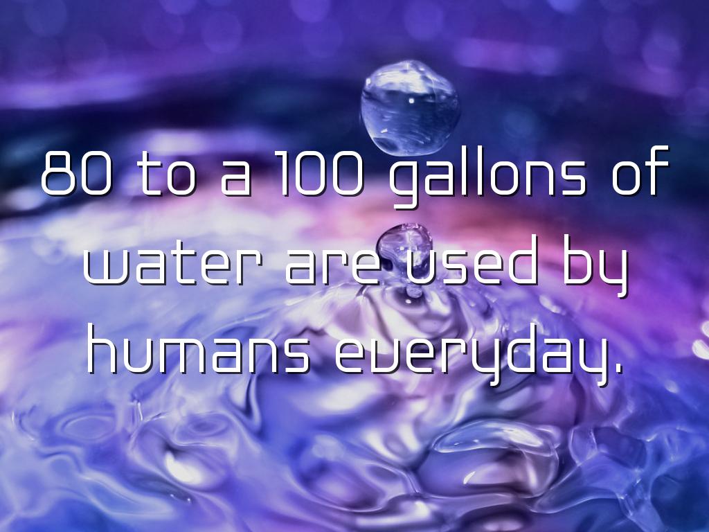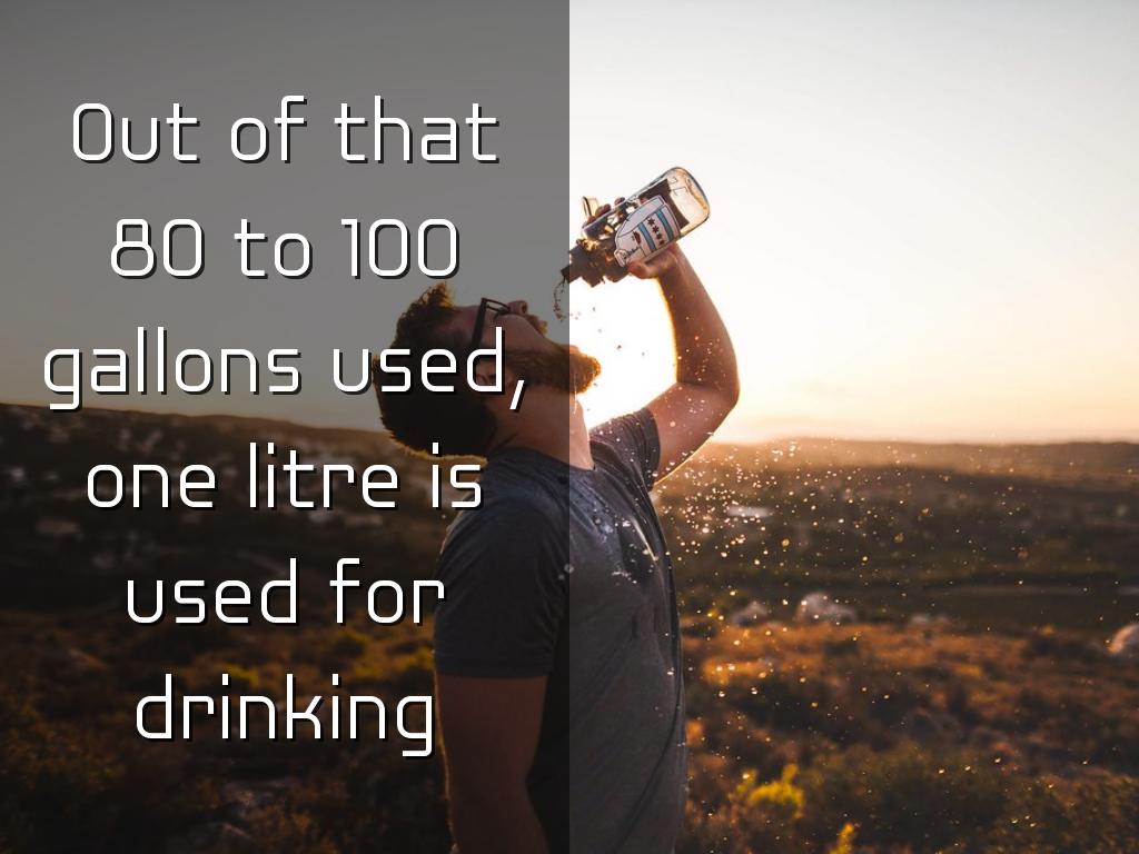 Out of that 80 to 100 gallons used, one litre is used for drinking