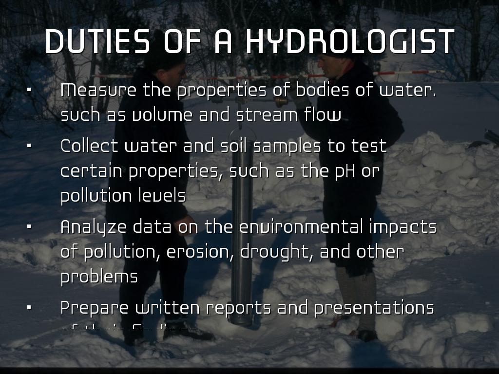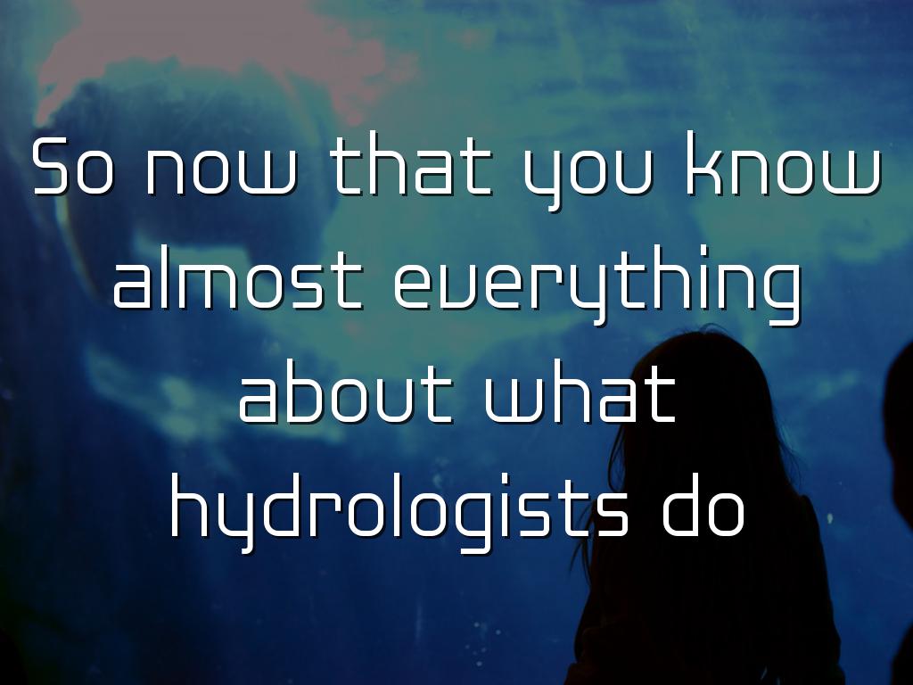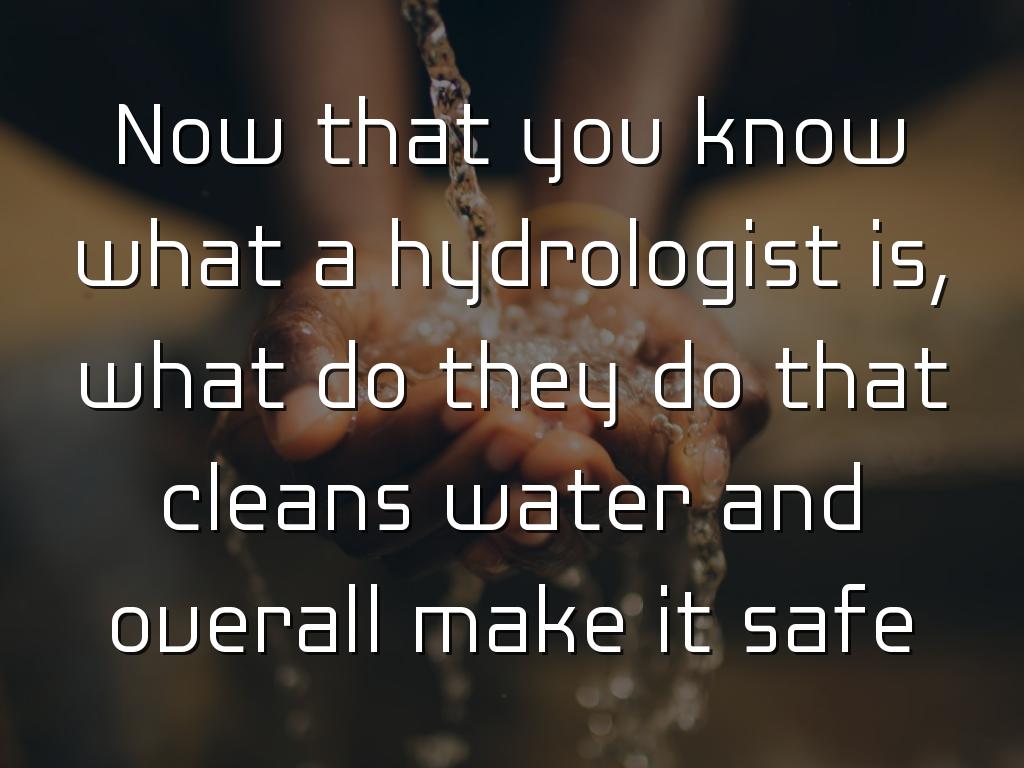 Now that you know what a hydrologist is, what do they do that cleans water and overall make it safe