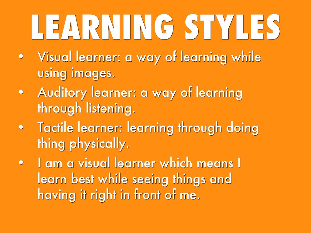 I am a visual learner which means I learn best while seeing things and having it right in front of me.