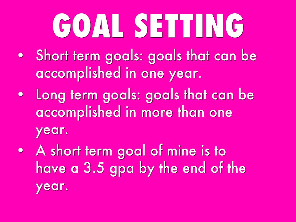 A short term goal of mine is to have a 3.5 gpa by the end of the year.