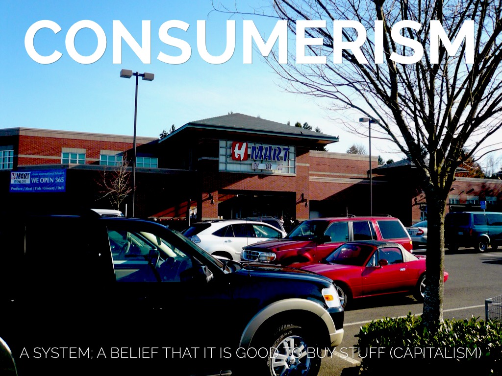 A SYSTEM; A BELIEF THAT IT IS GOOD TO BUY STUFF (CAPITALISM)