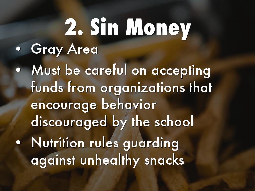 Must be careful on accepting funds from organizations that encourage behavior discouraged by the school