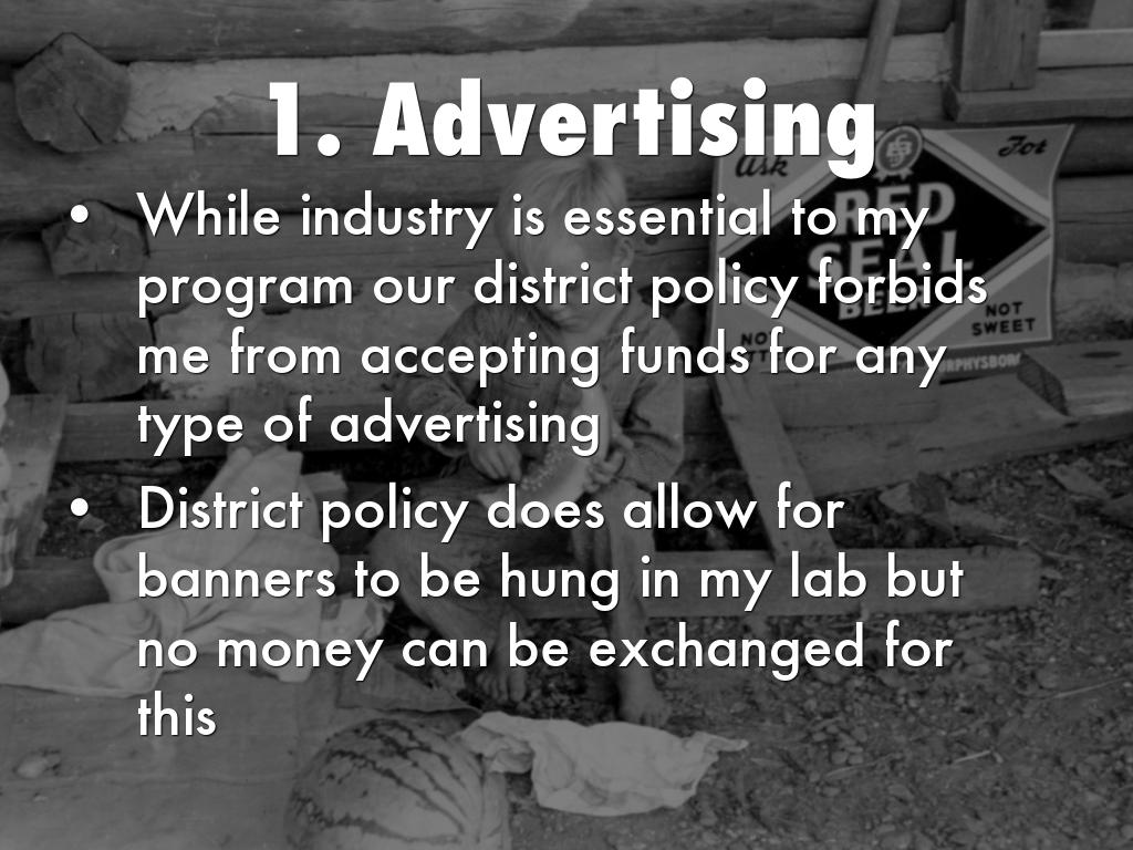 While industry is essential to my program our district policy forbids me from accepting funds for any type of advertising