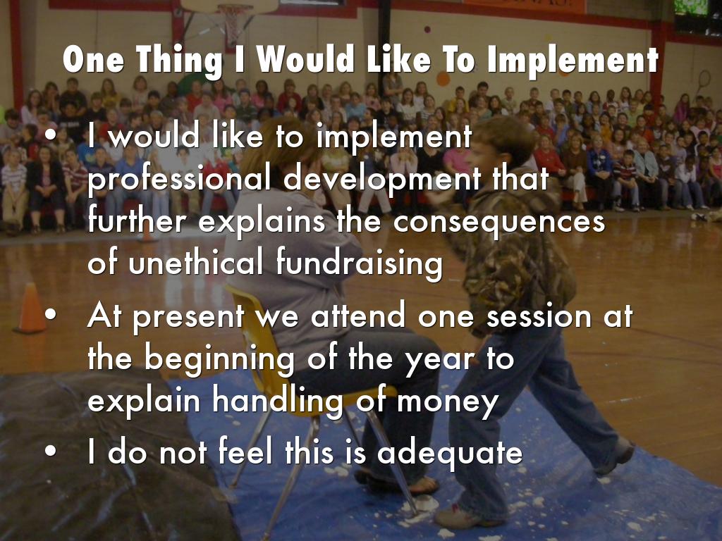 I would like to implement professional development that further explains the consequences of unethical fundraising
