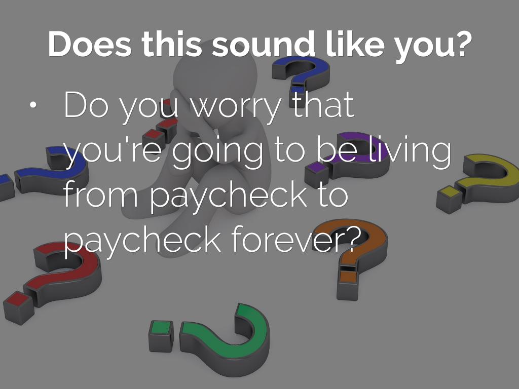 • Do you worry that you're going to be living from paycheck to paycheck forever?