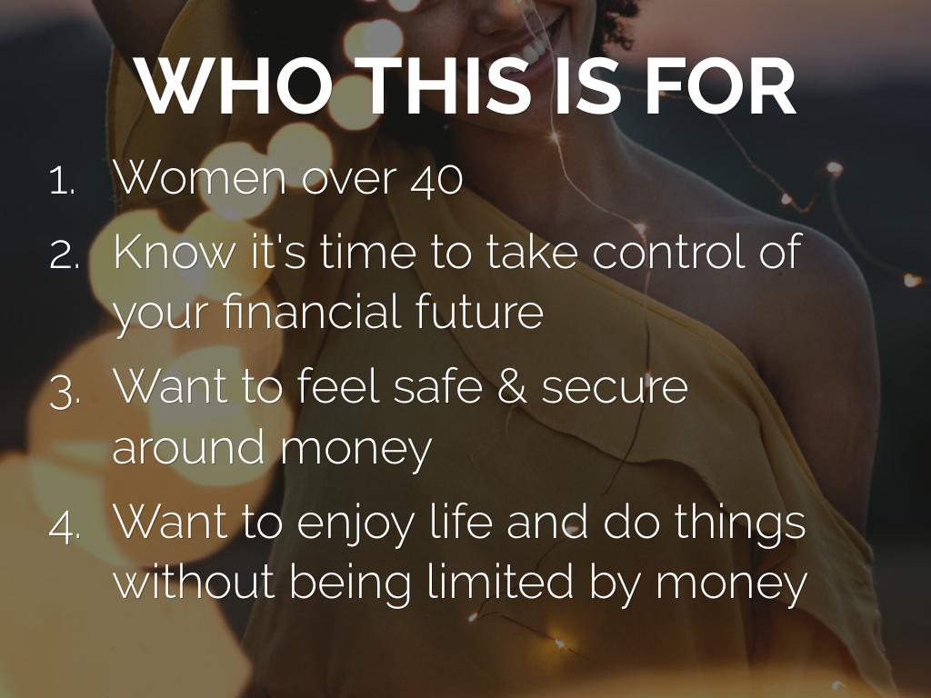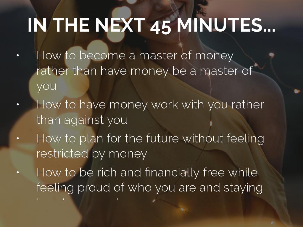 • How to have money be fun rather than the daunting, painful experience that it is now