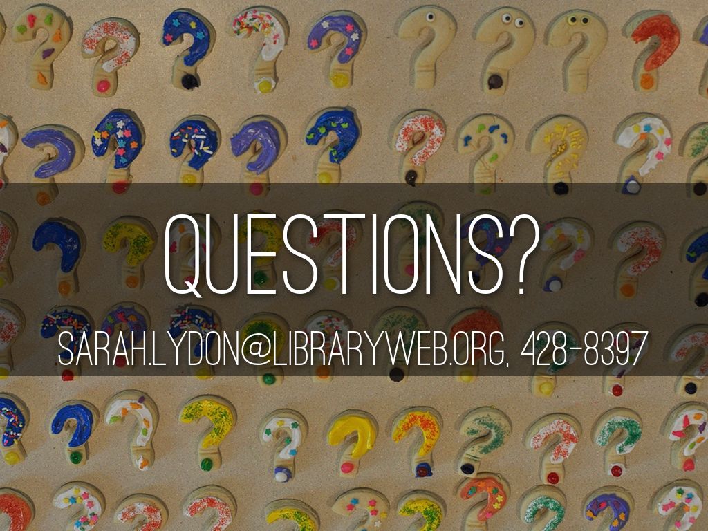 -Will have 'base' set up in the library right by me, same floor as Tonia, so that if you need to come in and do work before the branches open, or need more space, less noise, etc. will be available