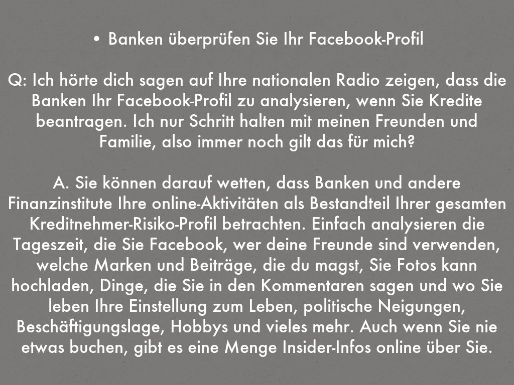 • Banken überprüfen Sie Ihr Facebook-Profil