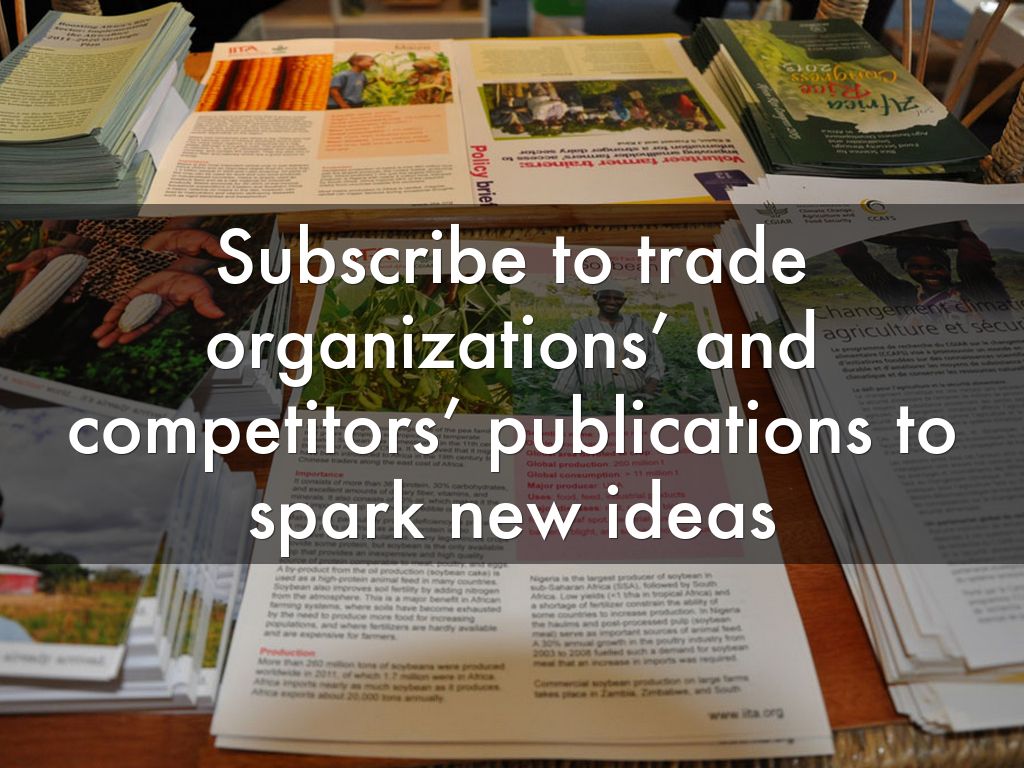 Subscribe to trade organizations’ and competitors’ publications to spark new ideas
