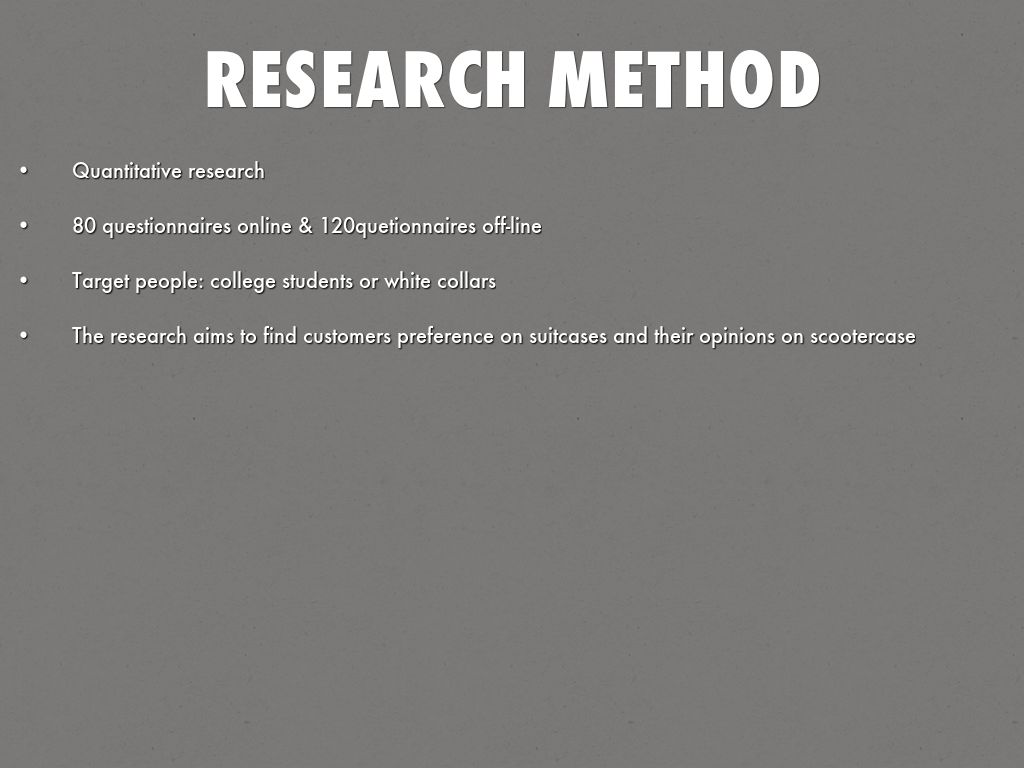 The research aims to find customers preference on suitcases and their opinions on scootercase