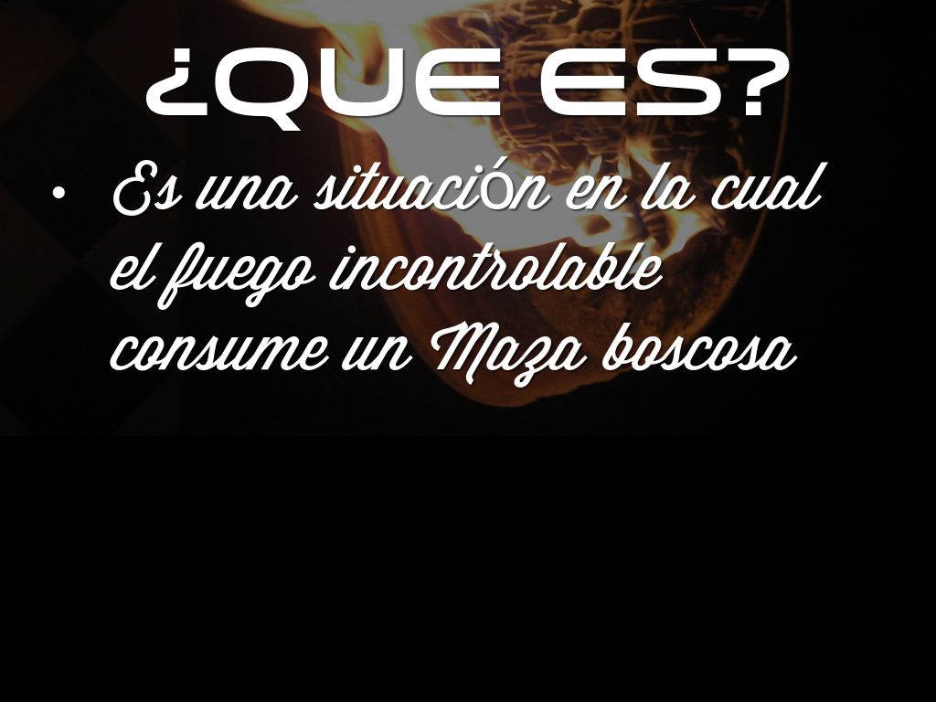 Es una situación en la cual el fuego incontrolable consume un Maza boscosa