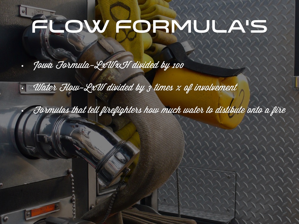 • Formulas that tell firefighters how much water to distibute onto a fire