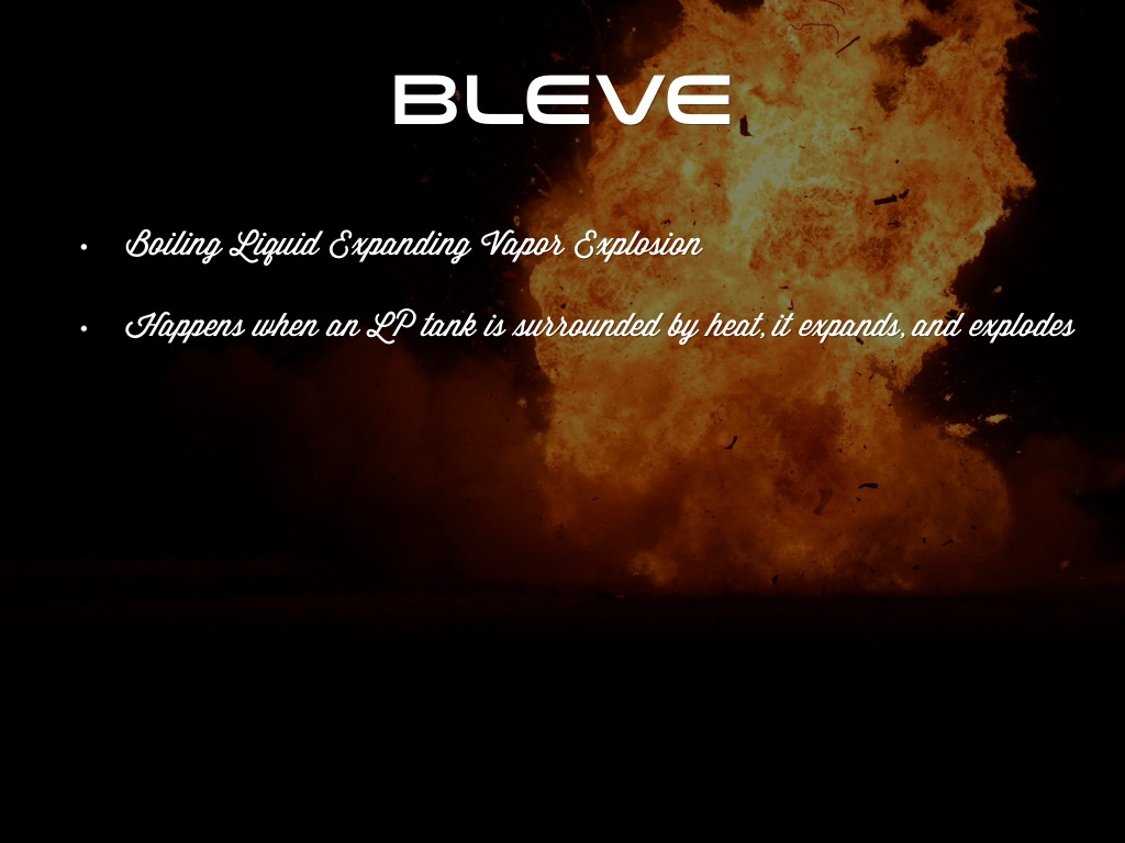 • Happens when an LP tank is surrounded by heat, it expands, and explodes