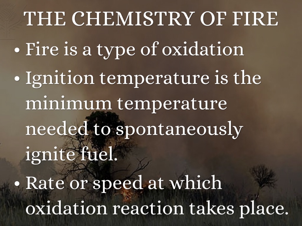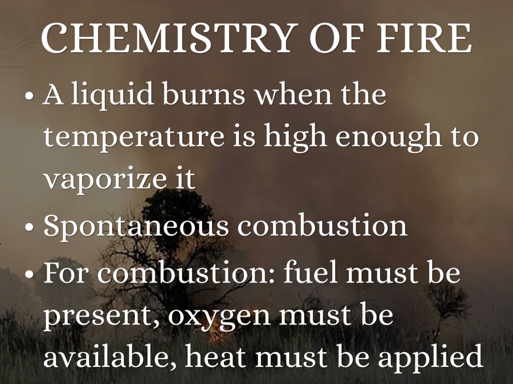 For combustion: fuel must be present, oxygen must be available, heat must be applied