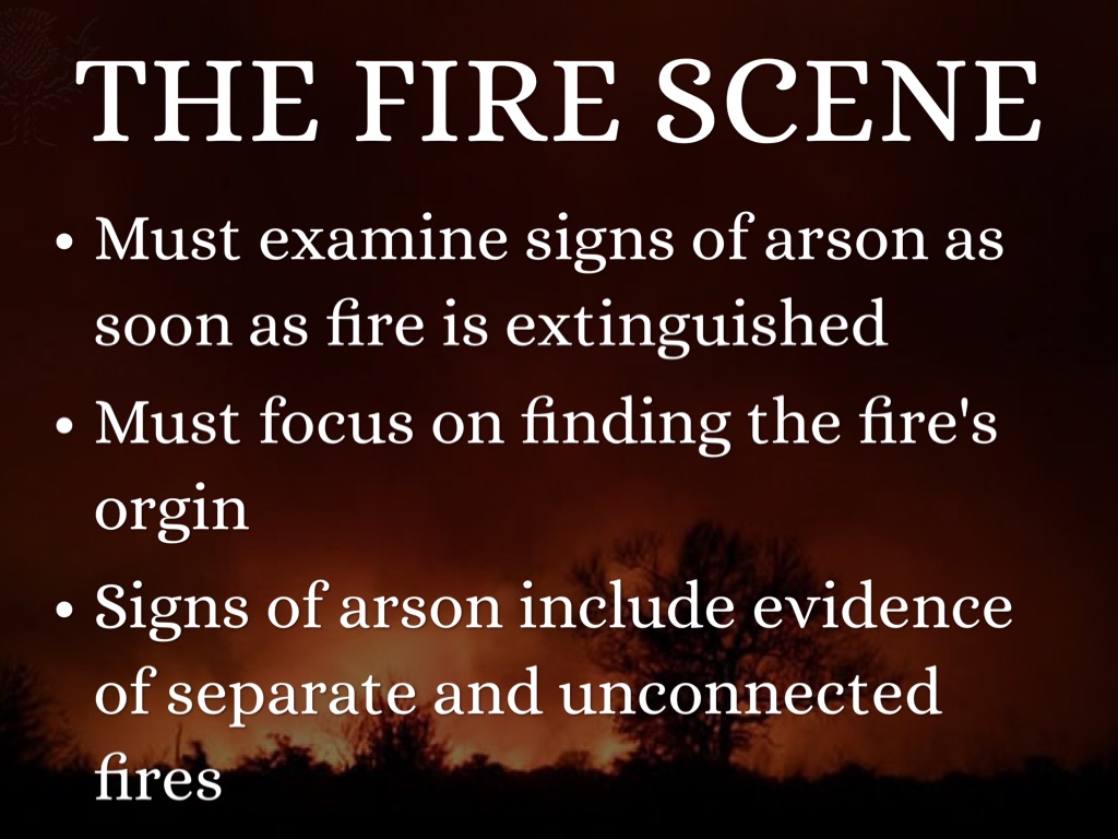 • arson investigators often present complex and difficult cirumstances to investigate.
