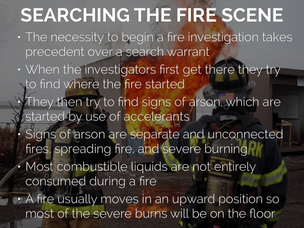 They then try to find signs of arson, which are started by use of accelerants