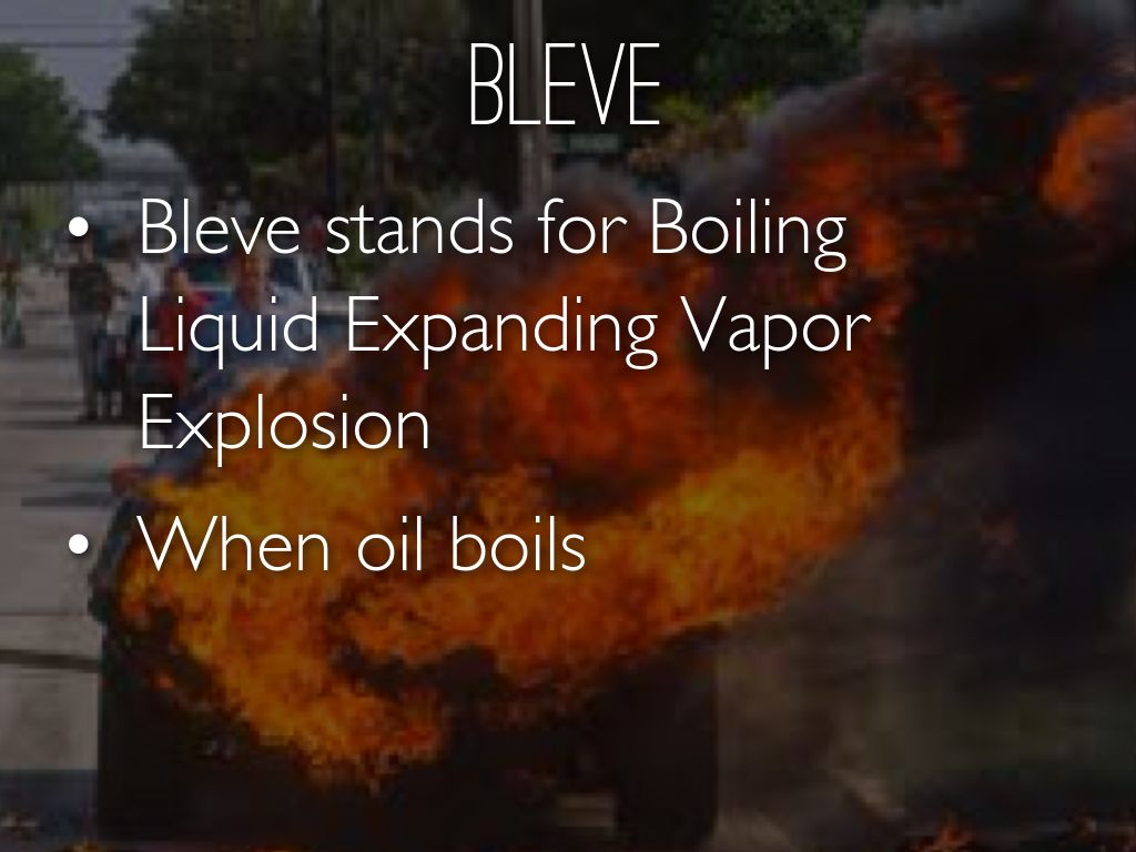 Bleve stands for Boiling Liquid Expanding Vapor Explosion