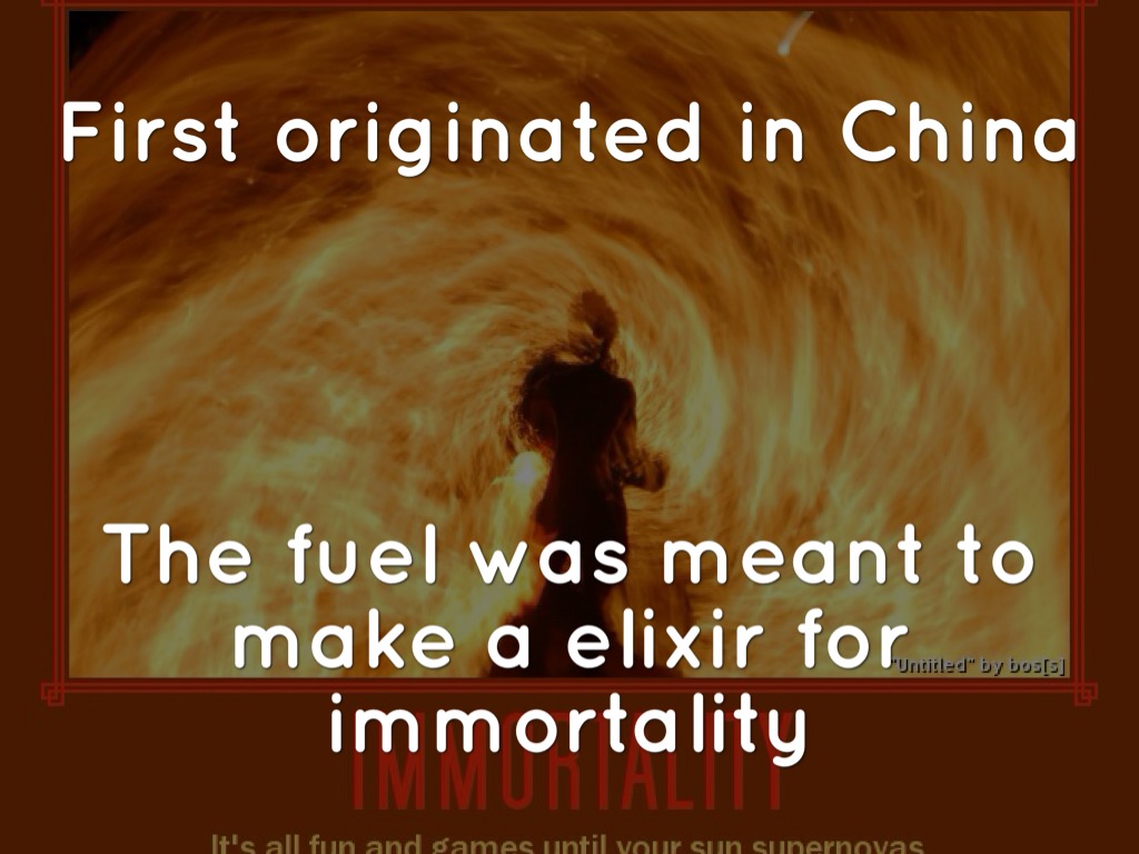 It's made by mixing together saltpeter (potassium nitrate, then a common kitchen seasoning), charcoal, sulfur and other ingredients, unwittingly yielding an early form of gunpowder