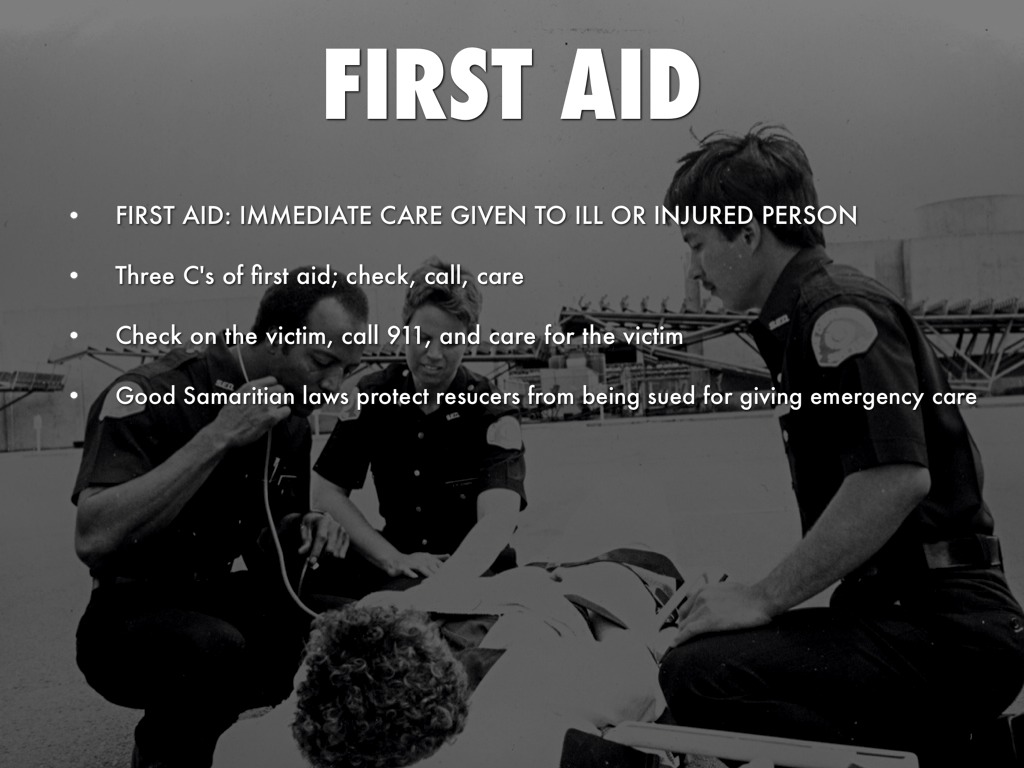 FIRST AID: IMMEDIATE CARE GIVEN TO ILL OR INJURED PERSON