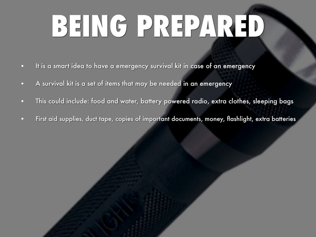 It is a smart idea to have a emergency survival kit in case of an emergency