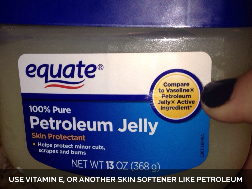 USE VITAMIN E, OR ANOTHER SKIN SOFTENER LIKE PETROLEUM