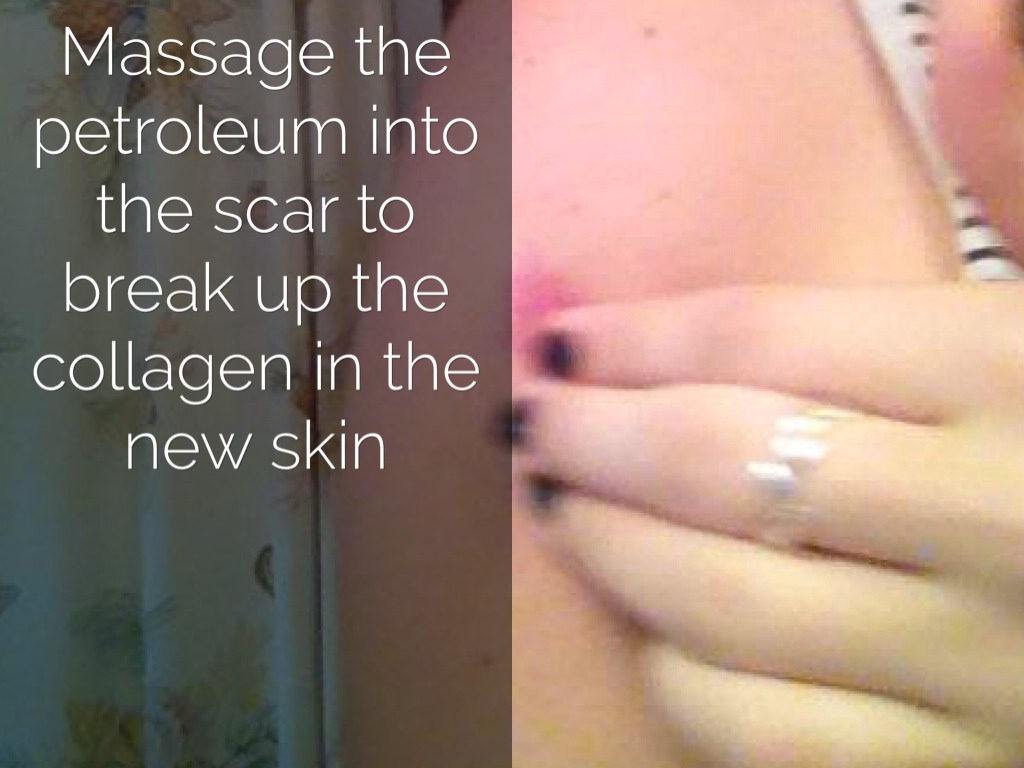 Massage the petroleum into the scar to break up the collagen in the new skin