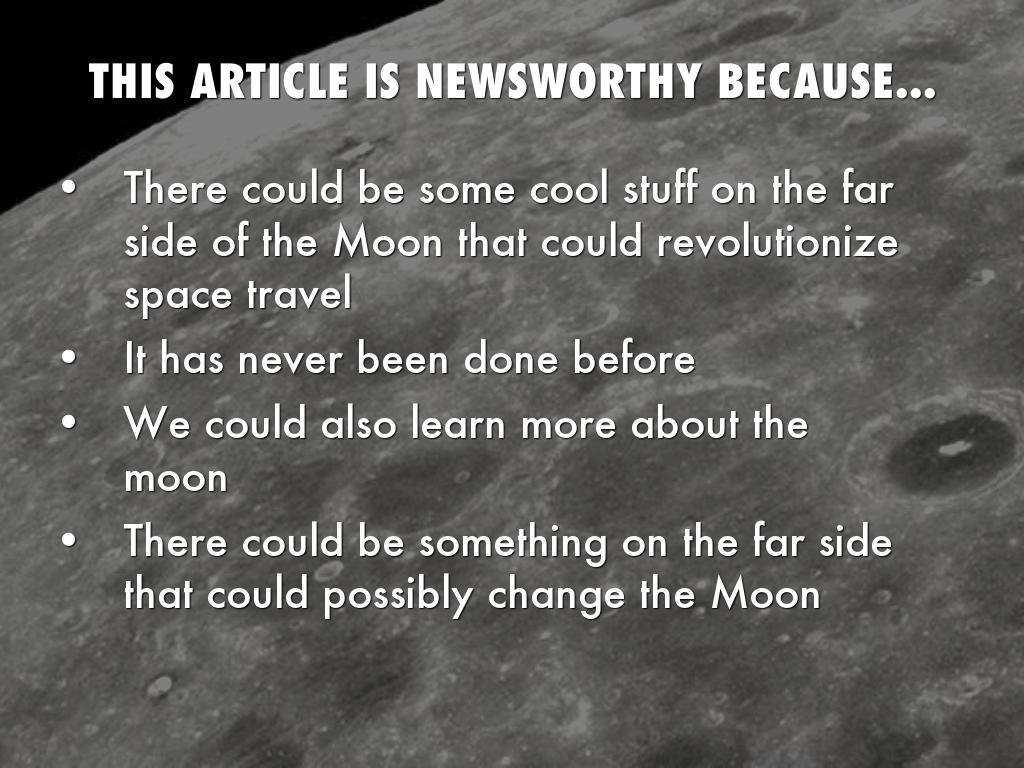 THIS ARTICLE IS NEWSWORTHY BECAUSE...