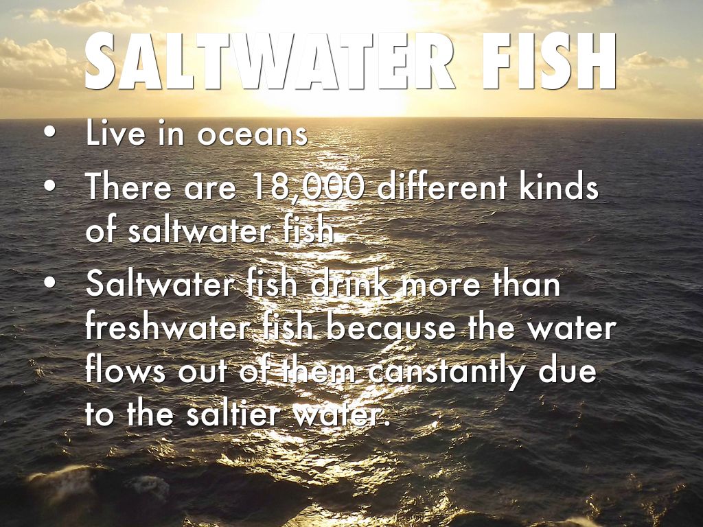 • Saltwater fish drink more than freshwater fish because the water flows out of them canstantly due to the saltier water.