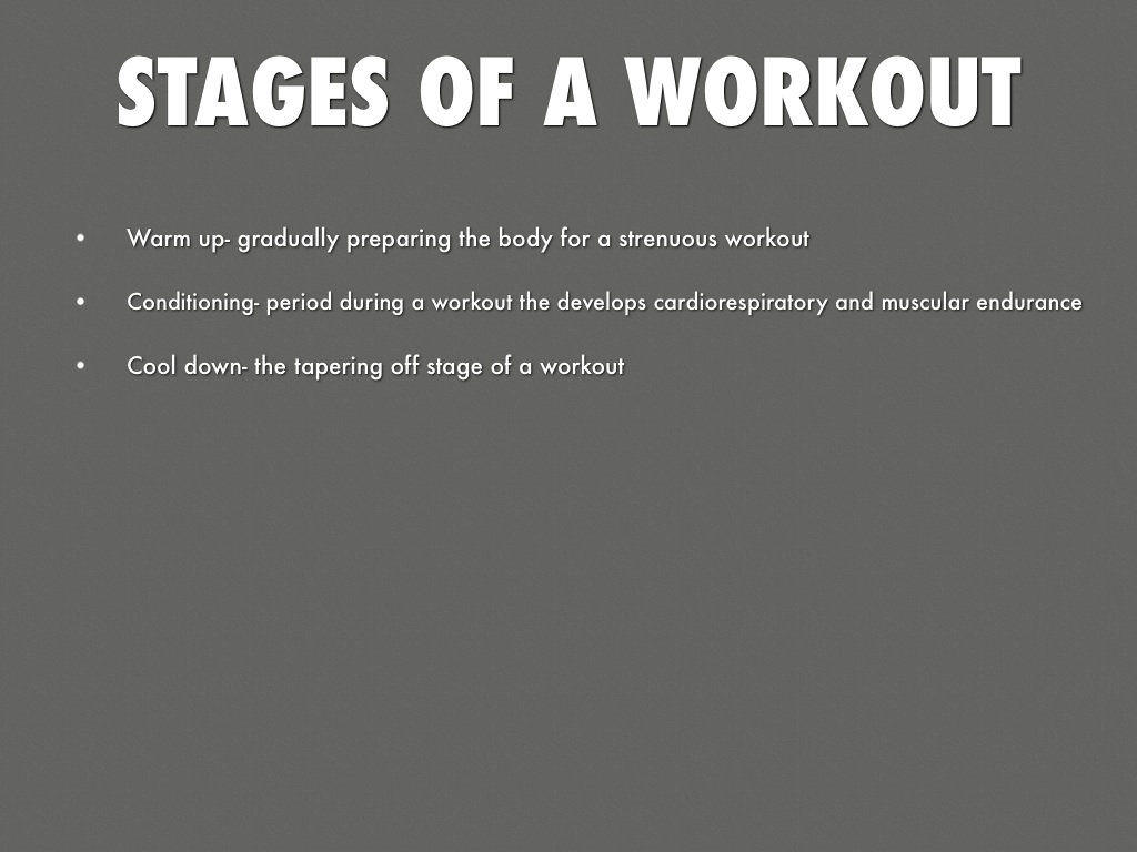 Conditioning- period during a workout the develops cardiorespiratory and muscular endurance