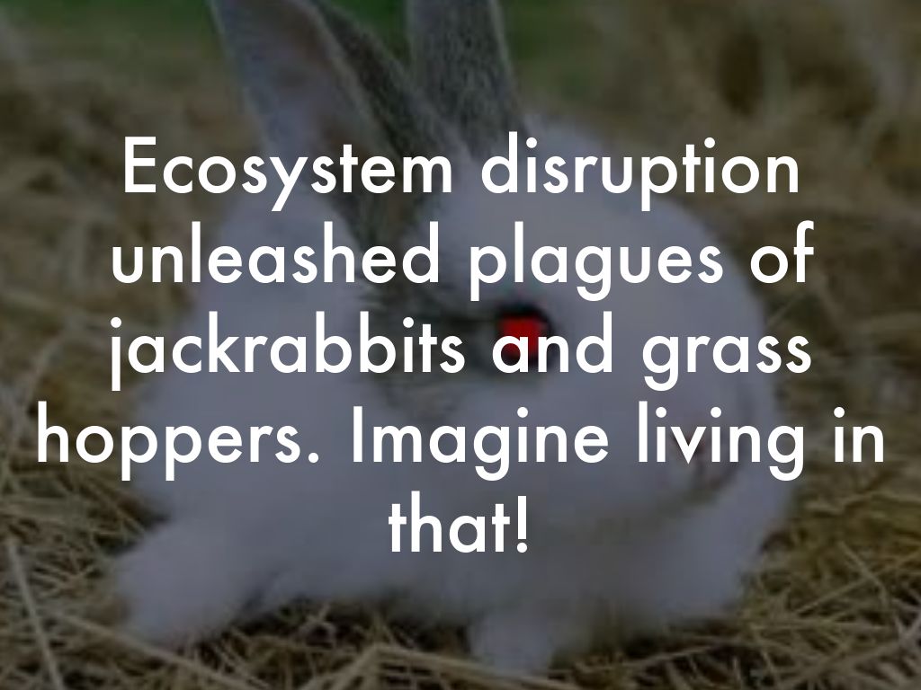 Ecosystem disruption unleashed plagues of jackrabbits and grass hoppers. Imagine living in that!
