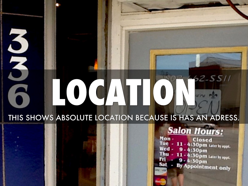 THIS SHOWS ABSOLUTE LOCATION BECAUSE IS HAS AN ADRESS.