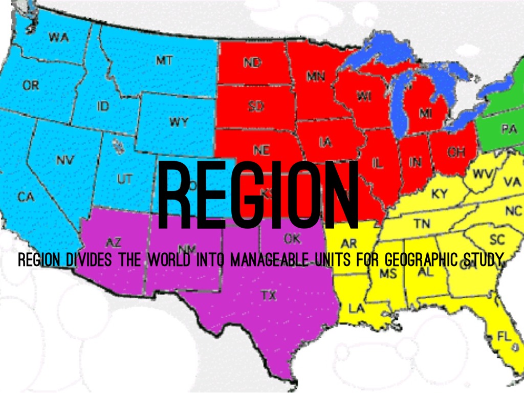 REGION DIVIDES THE WORLD INTO MANAGEABLE UNITS FOR GEOGRAPHIC STUDY