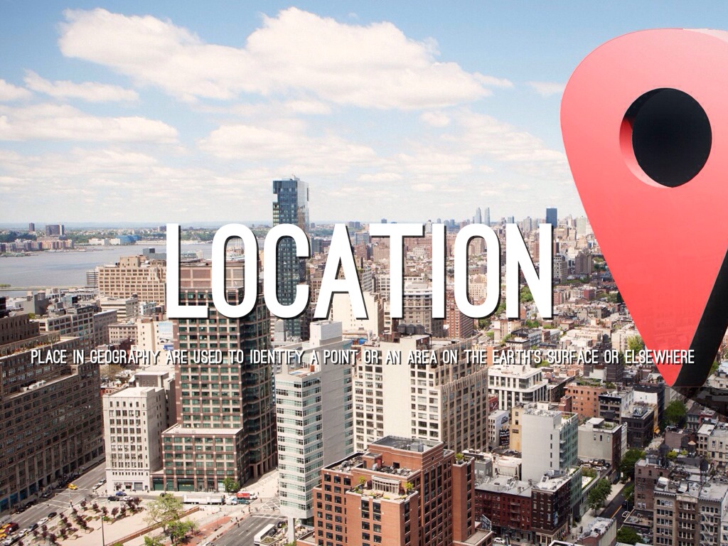PLACE IN GEOGRAPHY ARE USED TO IDENTIFY A POINT OR AN AREA ON THE EARTH'S SURFACE OR ELSEWHERE