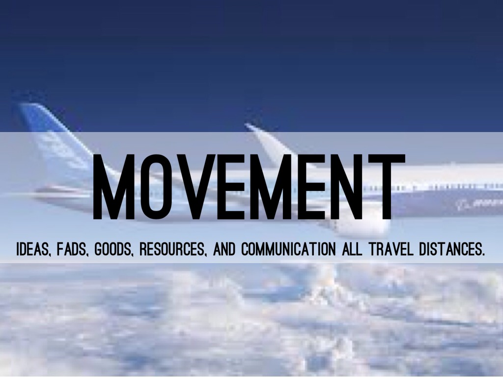 IDEAS, FADS, GOODS, RESOURCES, AND COMMUNICATION ALL TRAVEL DISTANCES.