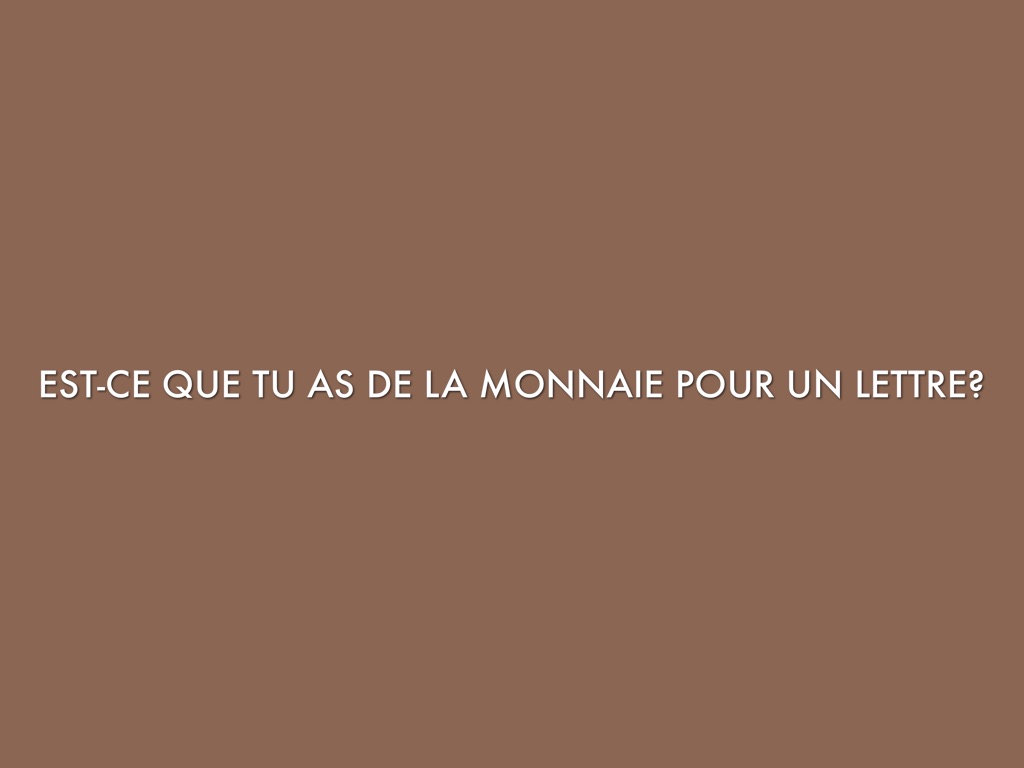 EST-CE QUE TU AS DE LA MONNAIE POUR UN LETTRE?
