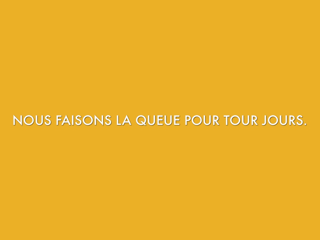 NOUS FAISONS LA QUEUE POUR TOUR JOURS.
