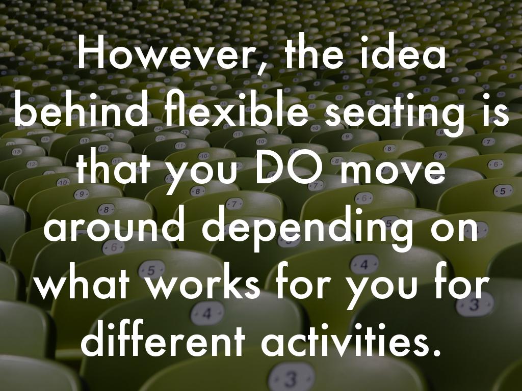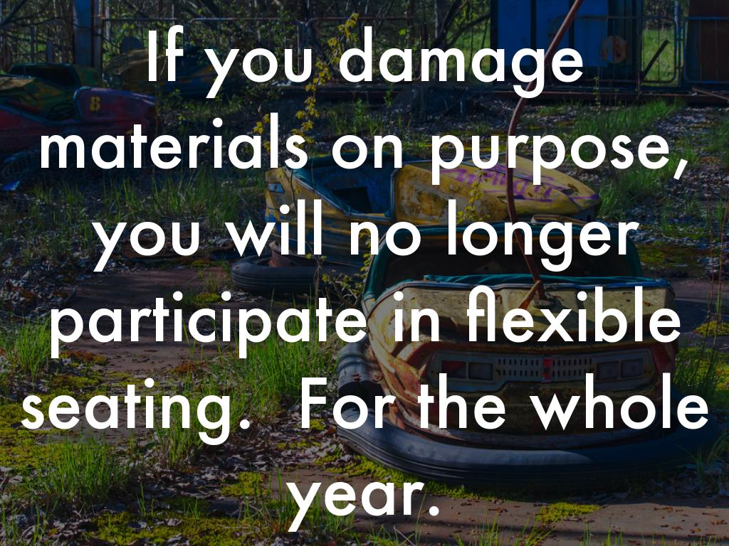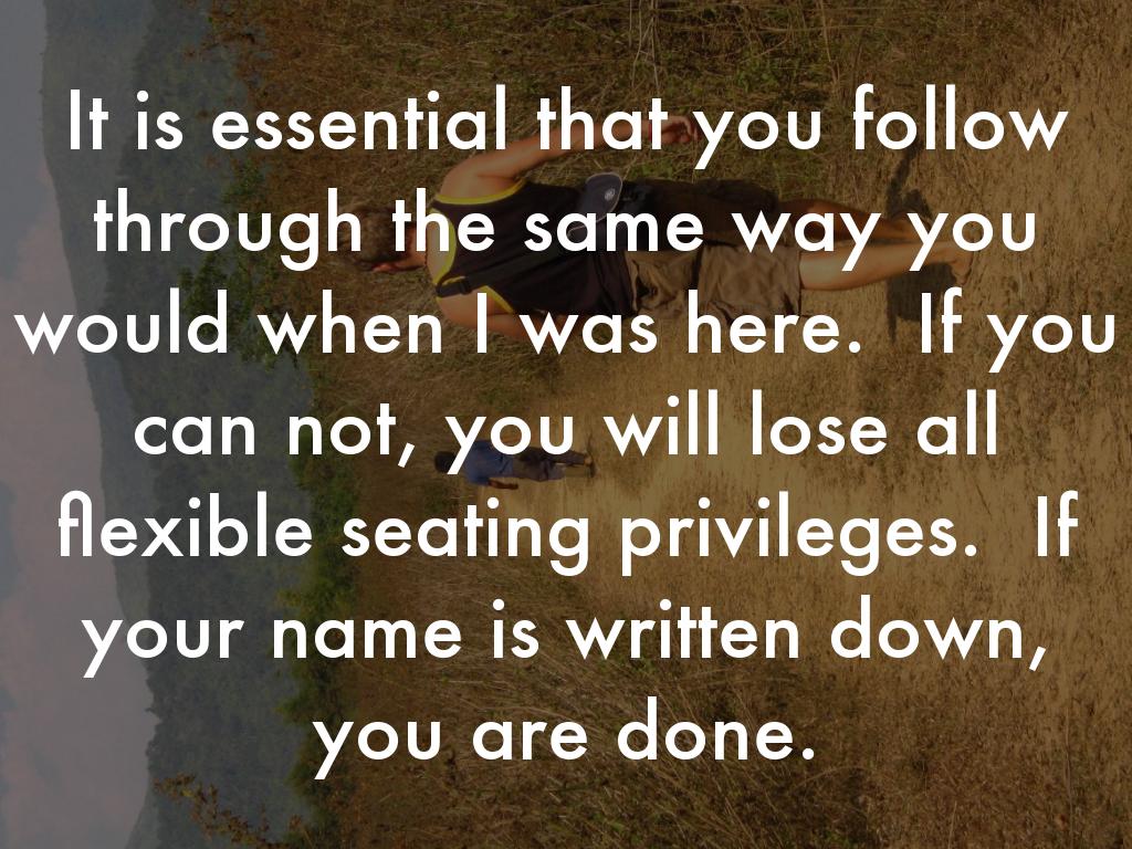 It is essential that you follow through the same way you would when I was here. If you can not, you will lose all flexible seating privileges. If your name is written down, you are done.
