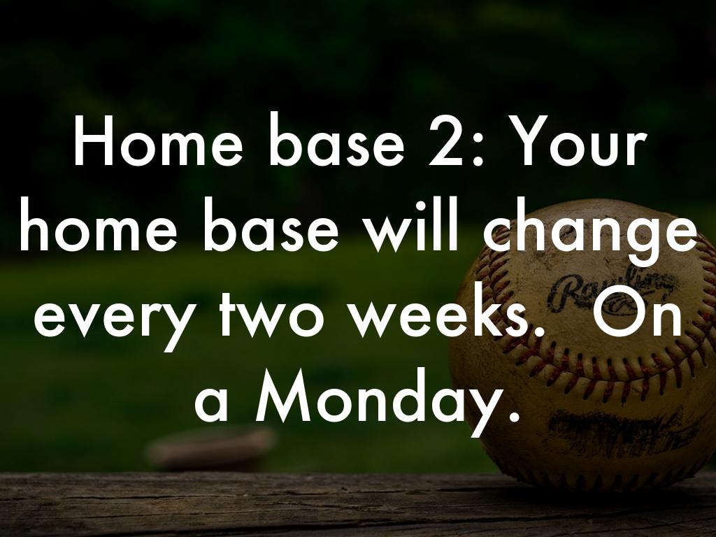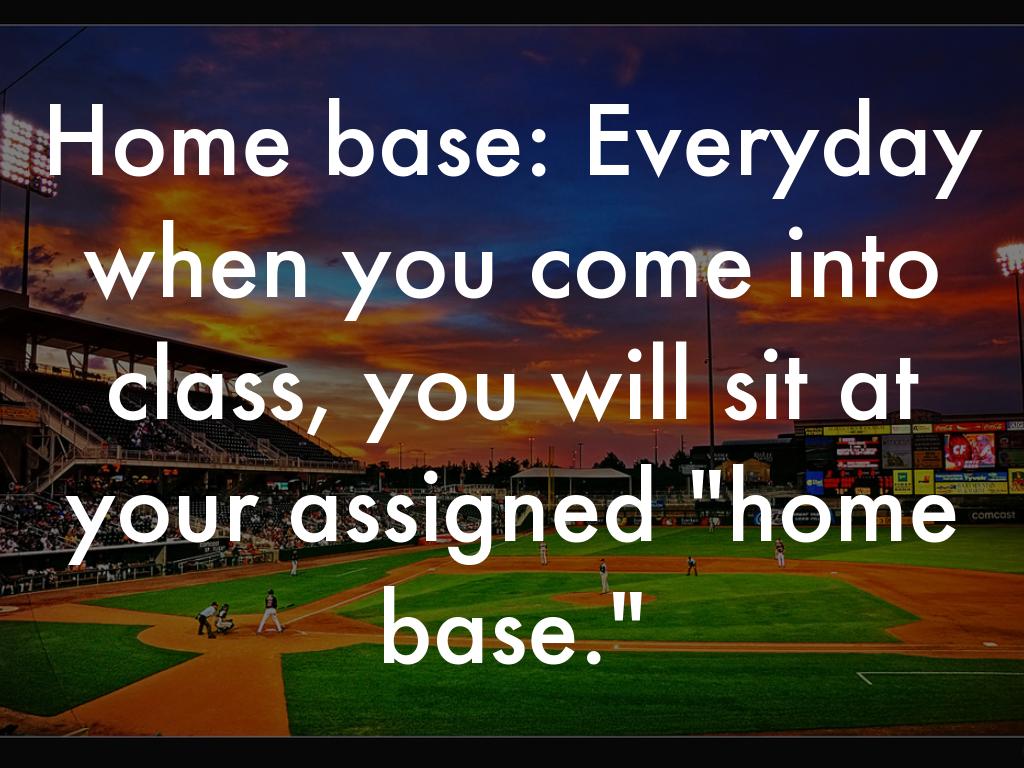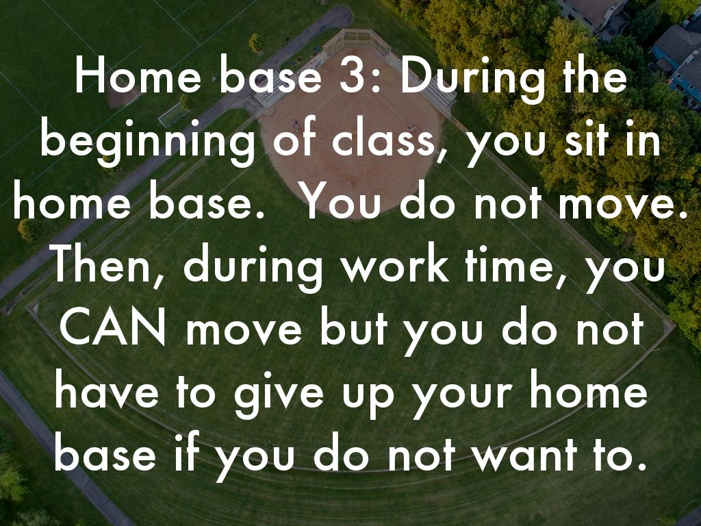 Home base 3: During the beginning of class, you sit in home base. You do not move. Then, during work time, you CAN move but you do not have to give up your home base if you do not want to.