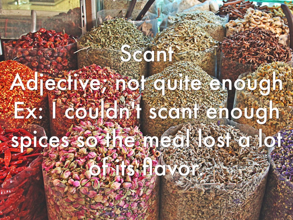 Ex: I couldn't scant enough spices so the meal lost a lot of its flavor.