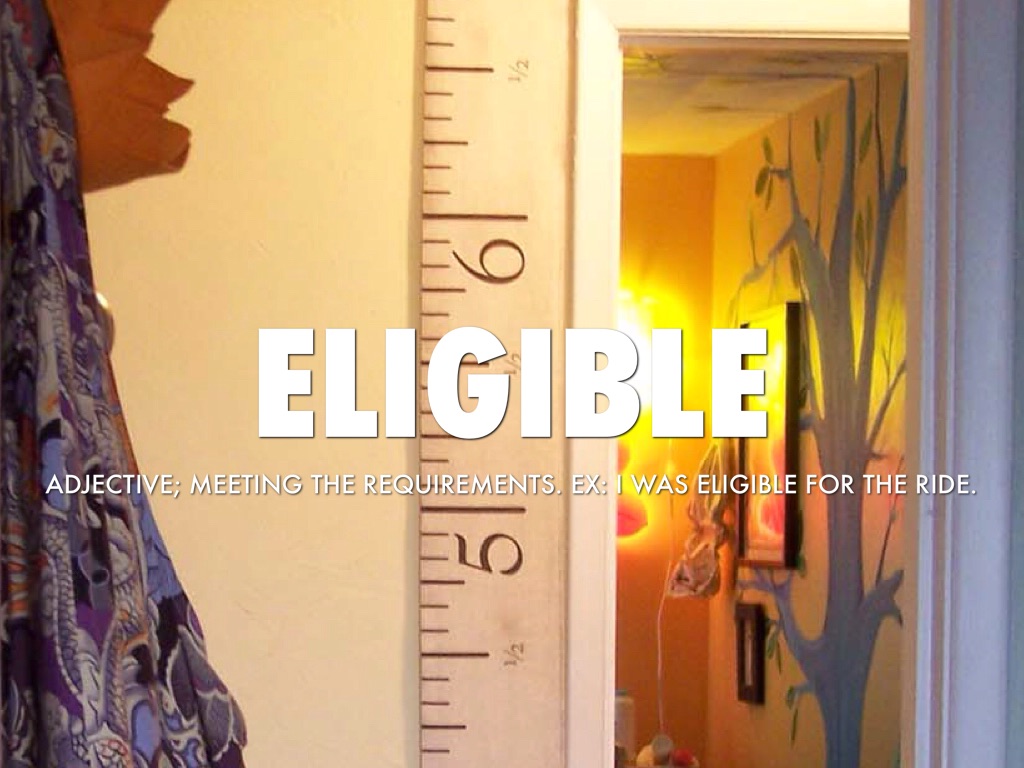 ADJECTIVE; MEETING THE REQUIREMENTS. EX: I WAS ELIGIBLE FOR THE RIDE.