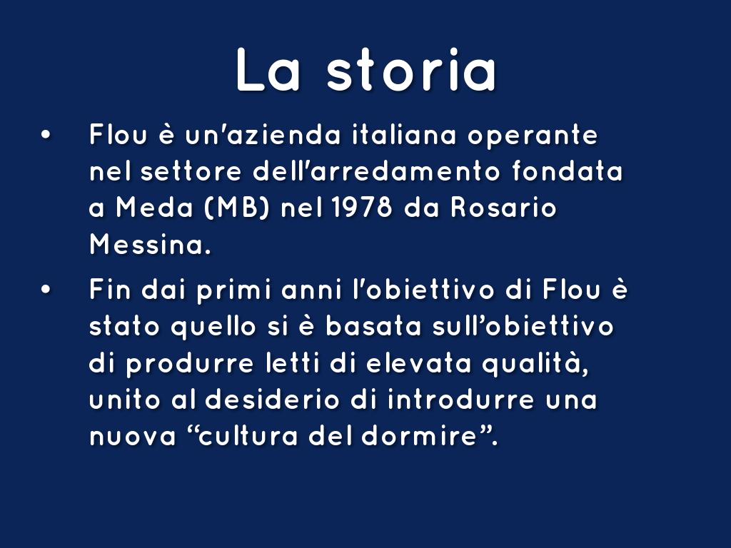 Fin dai primi anni l'obiettivo di Flou è stato quello si è basata sull’obiettivo di produrre letti di elevata qualità, unito al desiderio di introdurre una nuova “cultura del dormire”.