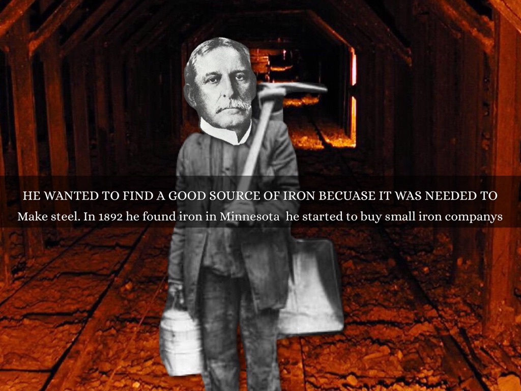 Make steel. In 1892 he found iron in Minnesota he started to buy small iron companys