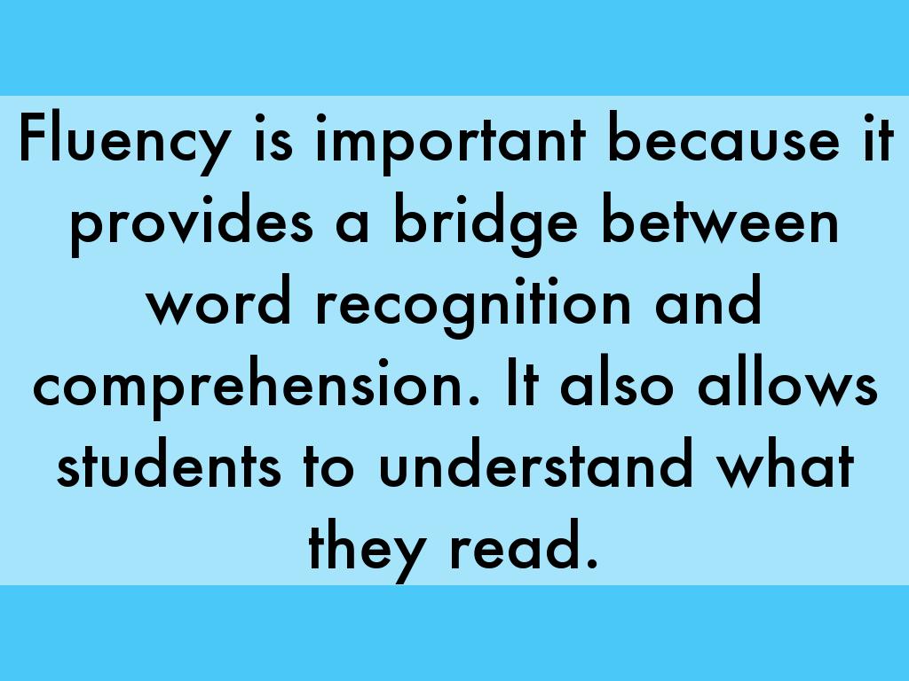 Fluency is important because it provides a bridge between word recognition and