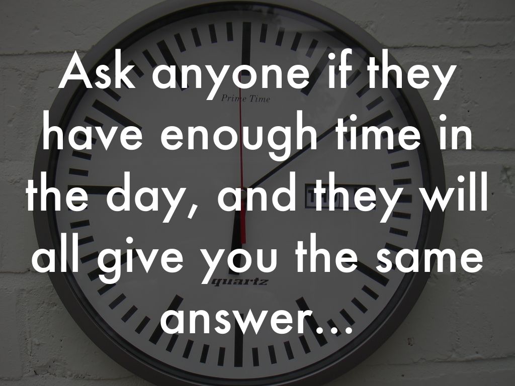 Ask anyone if they have enough time in the day, and they will all give you the same answer...